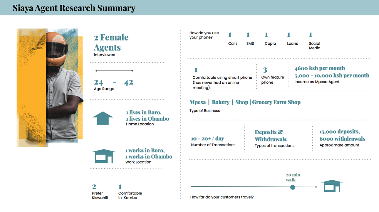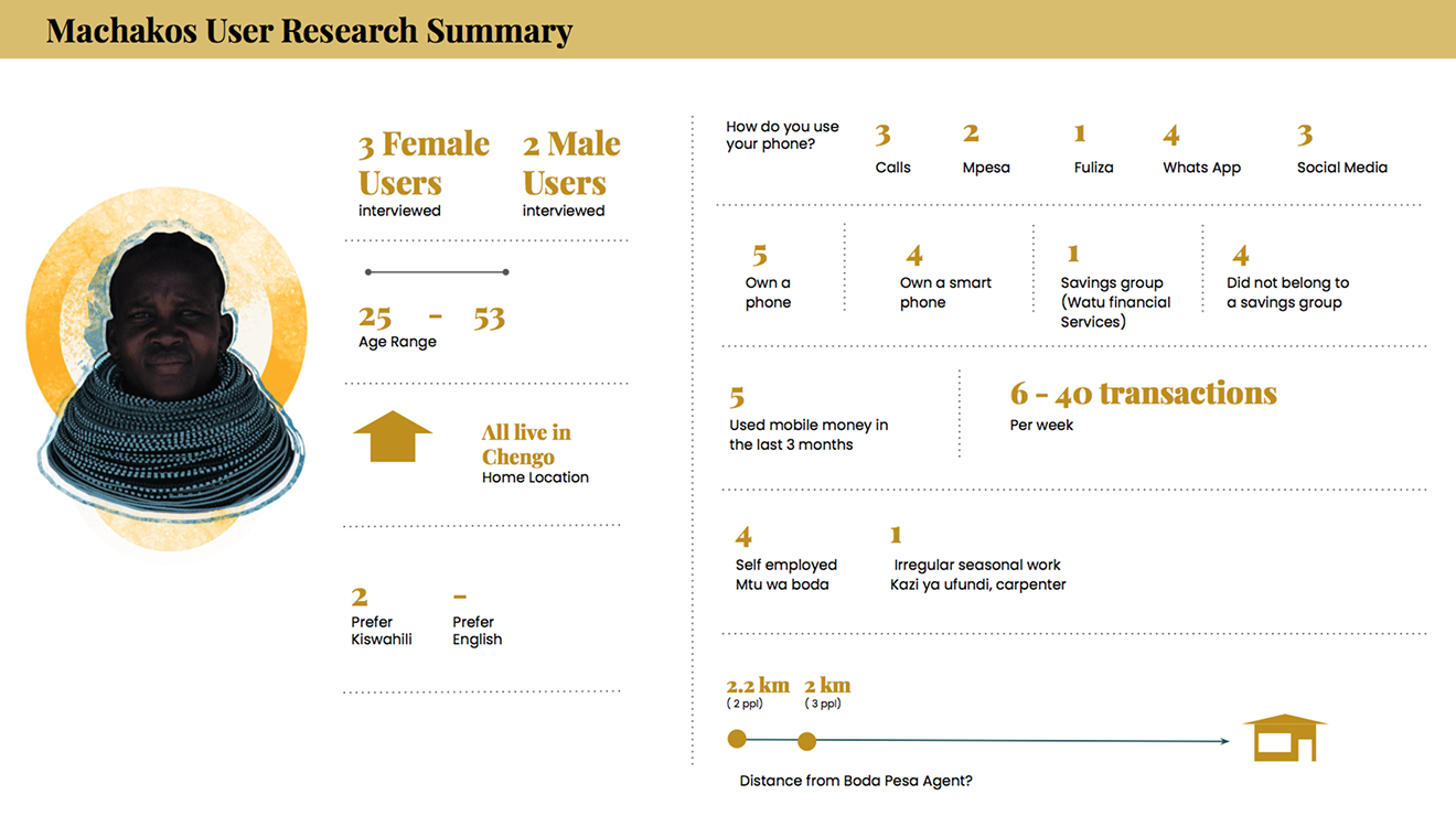 In the course of this 4 week sprint we focused on conducting user research and answering questions on what parameters such as customer needs, population density & economic vibrancy are needed to make a location successful for Boda Pesa’s roving agent model.